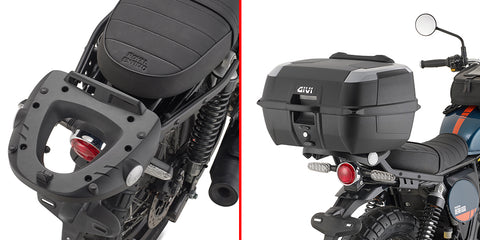 To fit a Givi top box to your bike, you will need a rack or fitting kit – either the one your bike came with, or a bike-specific one from Givi. You will also need a plate to suit a Monokey style or a Monolock style box. These are sometimes supplied with the rack or box, so check when ordering if you are not sure.