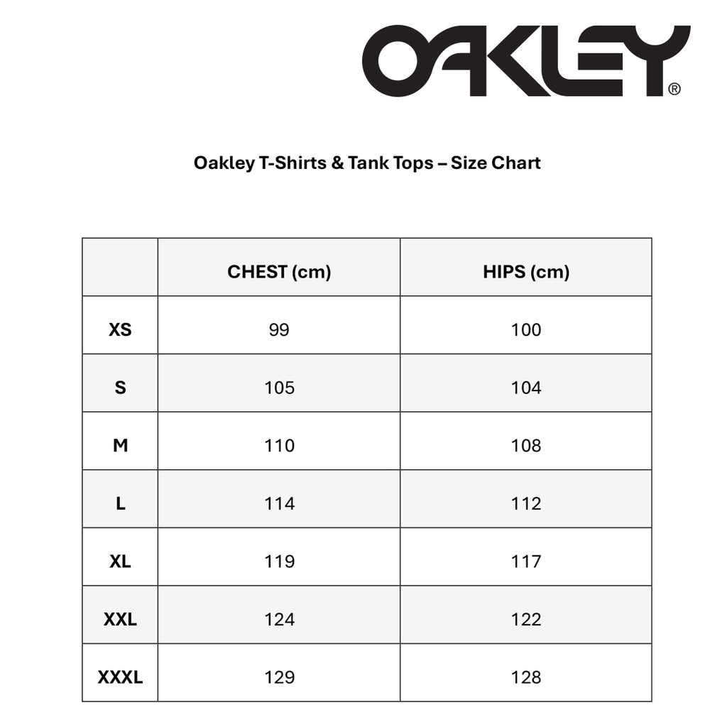 Freshen up your street look! This 100% cotton t-shirt has an understated small Oakley Ellipse logo on the front, that is offset by the bold and original melted metal Oakley graphic that jumps out at the back. This tee has a roomy and boxy fit, and is finished off with Oakley's hallmark back leash holder.