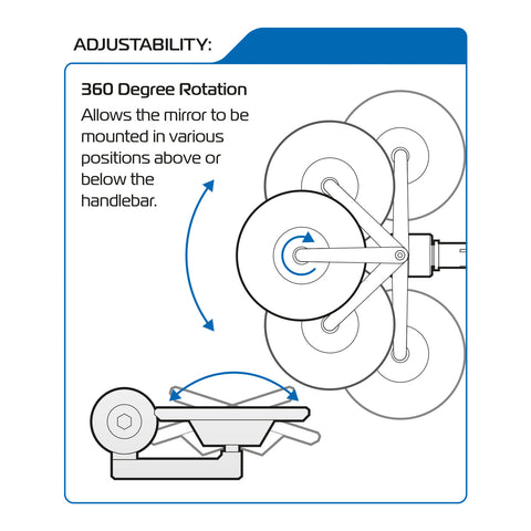 - 360° rotation: allows the mirror to be mounted at either end of - and positioned above or below - the handlebar.