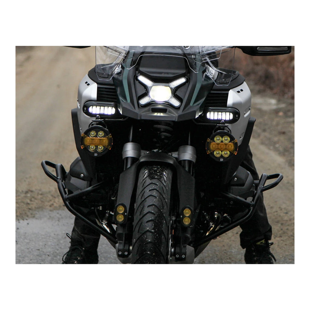 This vehicle specific driving light mount allows you to mount any DENALI driving light to your R1300GS Adventure. Its low profile and tucked in design make for a very clean install while placing your lights in the optimum location.