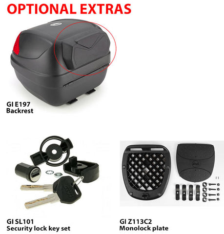 Disclaimer: Givi's Monolock top cases are designed primarily for scooters or small capacity motorcycles whose use is typically urban commuting at speeds not exceeding 60kph. Their lightweight construction is not intended for use on large capacity motorcycles at highway speeds, for these applications we recommend Givi's Monokey top and side cases.