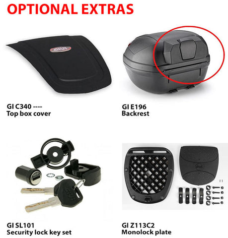 Adding to the range of quality Givi commuter cases, the E340 top box is ideal for use on scooters and low-powered motorcycles. Featuring a 34 litre capacity, it is large enough to hold a helmet, and has a maximum loading of up to 3kg.