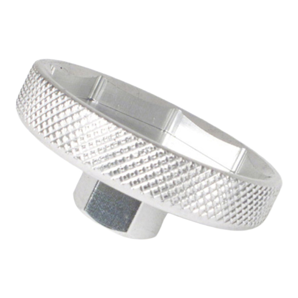 The Whites Showa BPF Fork Cap Removal Tool is designed to remove and install 8-point 45mm fork caps found on 43mm Showa big piston forks. Constructed from lightweight aluminium the tool prevents marring and damage to your expensive fork caps, with a knurled edge for additional grip. The 17mm hex head enables use with a ratchet or torque wrench for quick and easy removal and accurate installation.