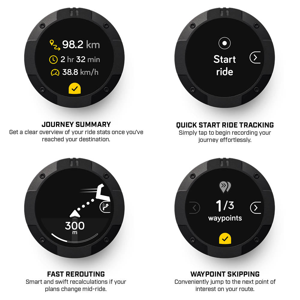 The Beeline Moto 2 boasts a brand-new TFT screen more than twice the size of its predecessor, with an all-new anti-reflective and hydrophobic coating to ensure that you can see clearly come rain or shine.