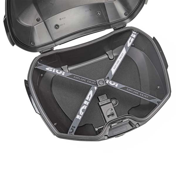 The Givi V49NB Air top case is designed to transform your ride in both performance and style. Equipped with the patented WINGFLOW system, tested in the wind tunnel by Givi’s R&D team, the V49 reduces vibration, cuts wind noise and improves stability by directing airflow smoothly past the case. With two black-painted aerodynamic wings on each side, it doesn’t just work better, it looks sharper too.
